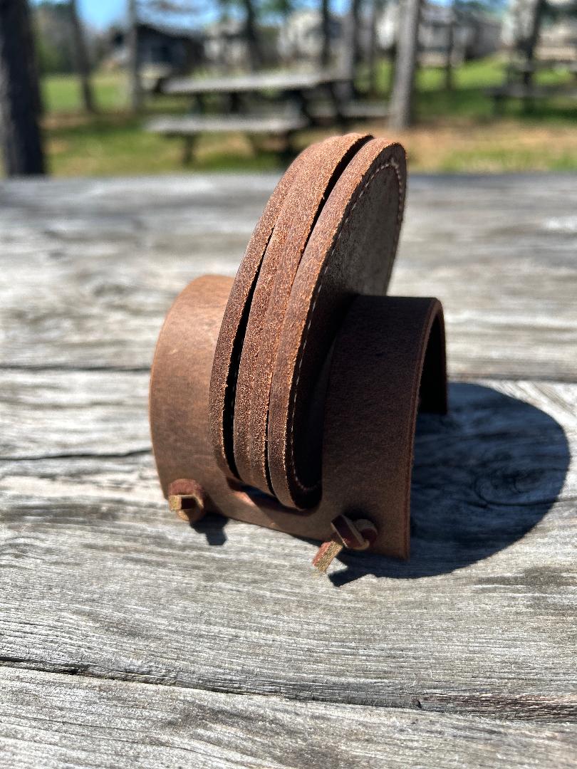 Protect your surfaces in style with our handcrafted leather coasters. Made from high-quality, durable leather, each coaster in this set of four is cut, shaped, and finished by hand in our workshop.