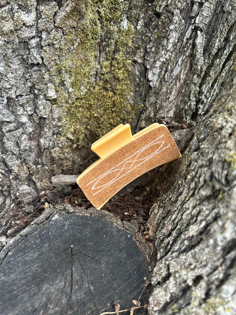 A 3-inch leather hair claw brings a polished, rustic, or bohemian feel to your hairstyle without being too bulky. Whether you're going for a classic look or something a bit more unique, it's a timeless accessory.