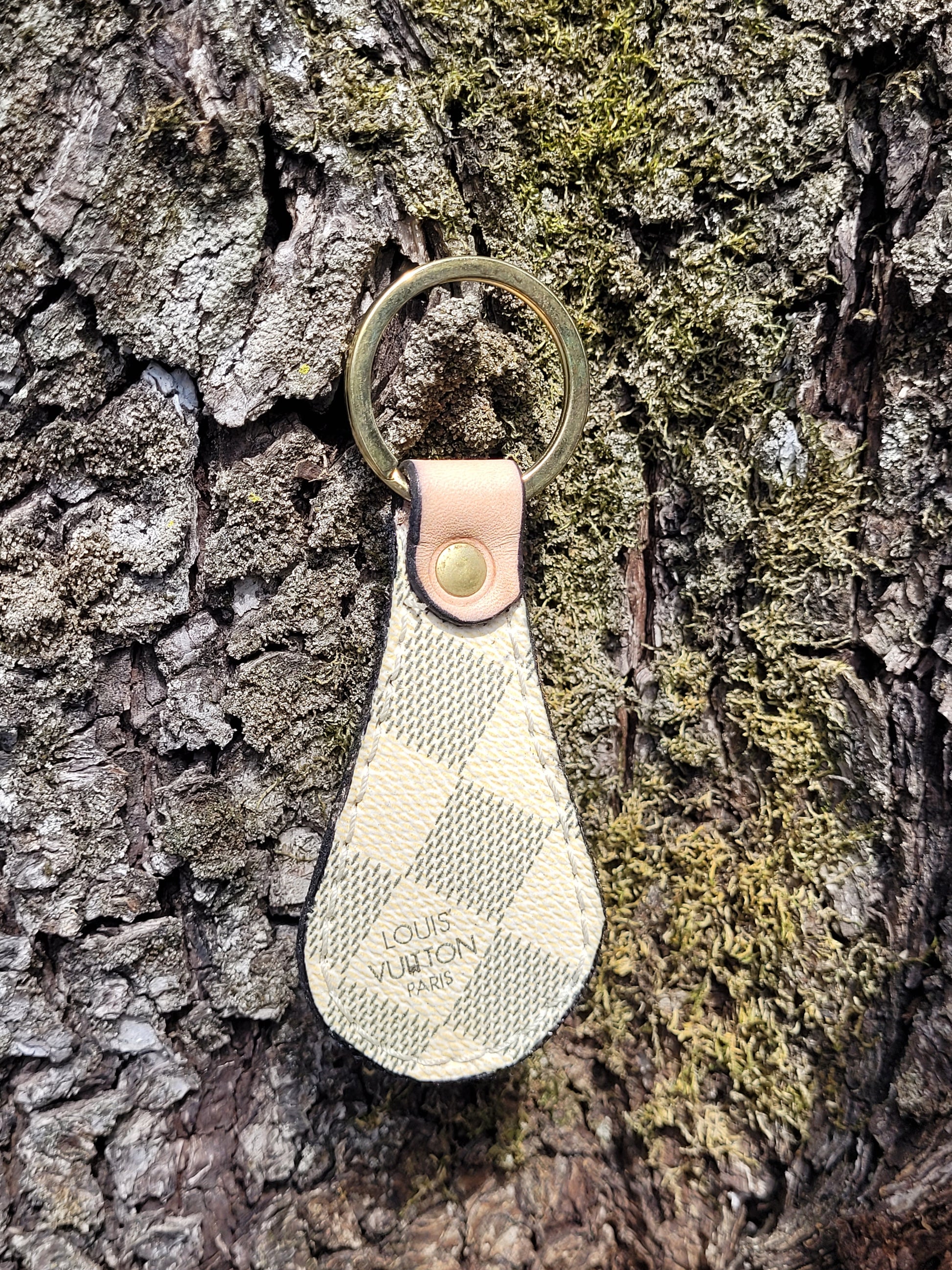 Our upcycled keychains are made from designer bags found in estate sales. They have worn-out straps, damaged parts, or broken zippers. It is a trendy and sustainable way to repurpose high-quality materials from luxury items. These keychains often retain the signature logos, patterns, or leather from the original bags, making them both unique and fashionable. With that, every keychain will vary from the picture.