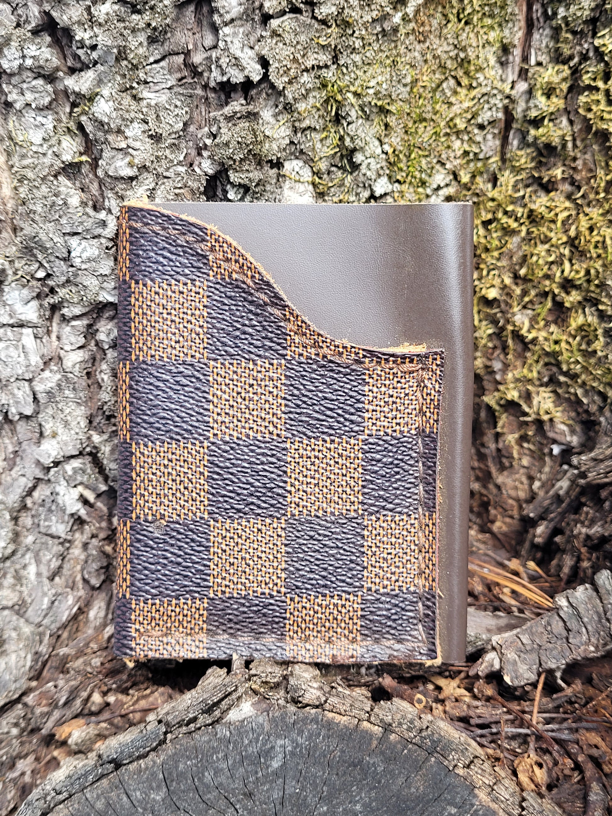 Our upcycled minimalist wallet are made from designer bags found in estate sales. They have worn-out straps, damaged parts, or broken zippers. It is a trendy and sustainable way to repurpose high-quality materials from luxury items. These minimalist wallets often retain the signature logos, patterns, or leather from the original bags, making them both unique and fashionable. With that, every minimalist wallet will vary from the picture.